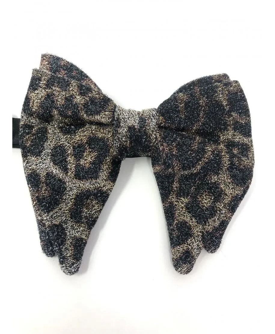 Papillon uomo base dorata e macchie nere in tessuto glitterato.