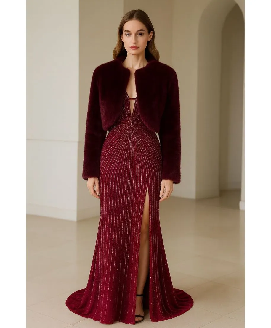 Il Pellicciotto corto - Coprispalle - Puff è la scelta perfetta per le donne che desiderano aggiungere un tocco di eleganza sofisticata al loro guardaroba di abiti da cerimonia. Disponibile in due tonalità raffinate, Blu Scuro e Bordeux, questo coprispalle è la quintessenza del lusso discreto. Realizzato con materiali di alta qualità, il pellicciotto corto offre una consistenza soffice e un calore ottimale, ideale per le fresche serate o eventi formali che si protraggono fino a tarda notte. Questo capo incarna la perfetta sintesi tra funzionalità e stile, rendendolo un’aggiunta preziosa a qualsiasi outfit da cerimonia.