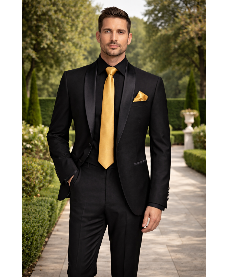 - Elevata eleganza per eventi formali con cravatta e pochette oro