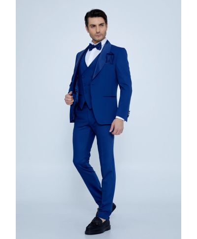 Questo smoking è ideale per chi vuole distinguersi con classe ed eleganza, senza rinunciare alla comodità. Il blu elettrico è una scelta raffinata per chi cerca un’alternativa al classico nero, perfetta per uomini sicuri di sé e attenti ai dettagli di stile.