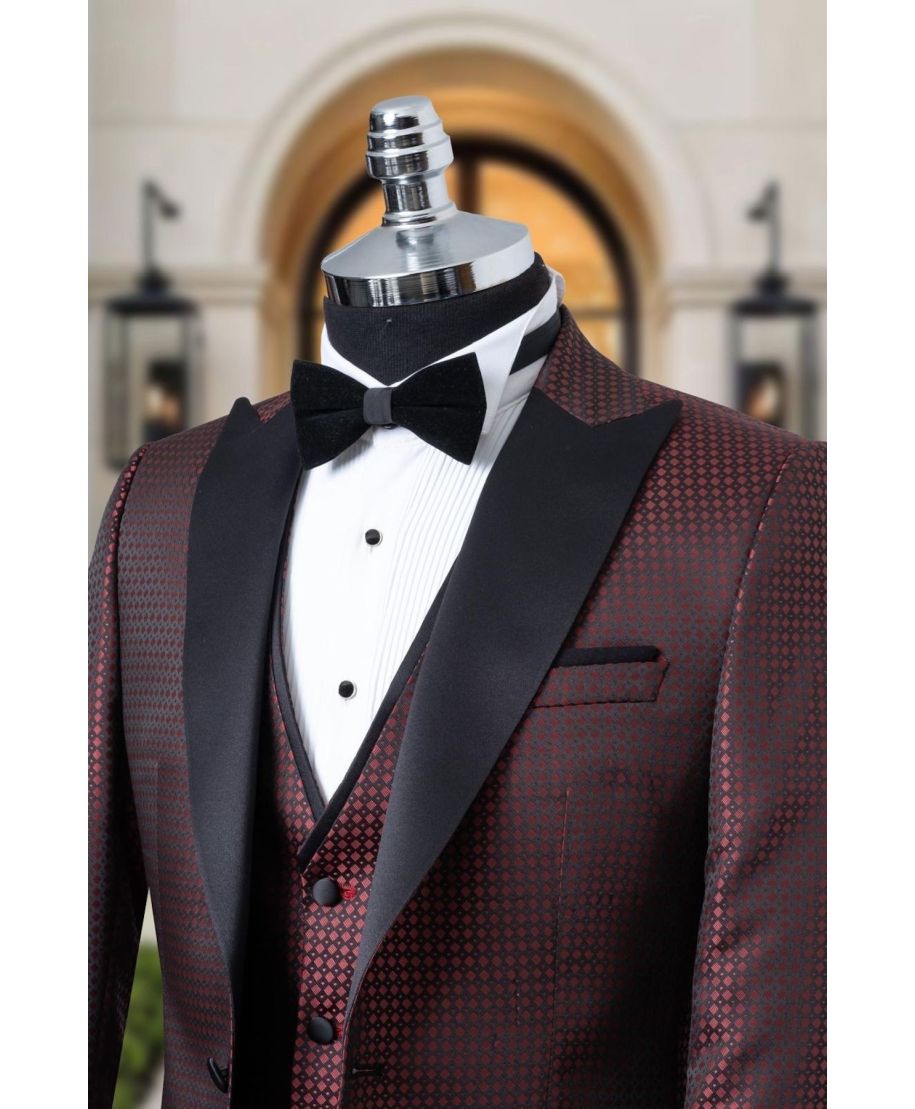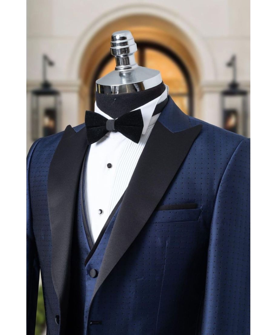 Accessori: Completa l'abito con accessori adeguati come una camicia bianca elegante, un papillon (preferibilmente in seta), una fascia per il girovita, e scarpe di vernice nera. Non dimenticare i gemelli e, se desideri un tocco di eleganza in più, una pochette da taschino coordinata.