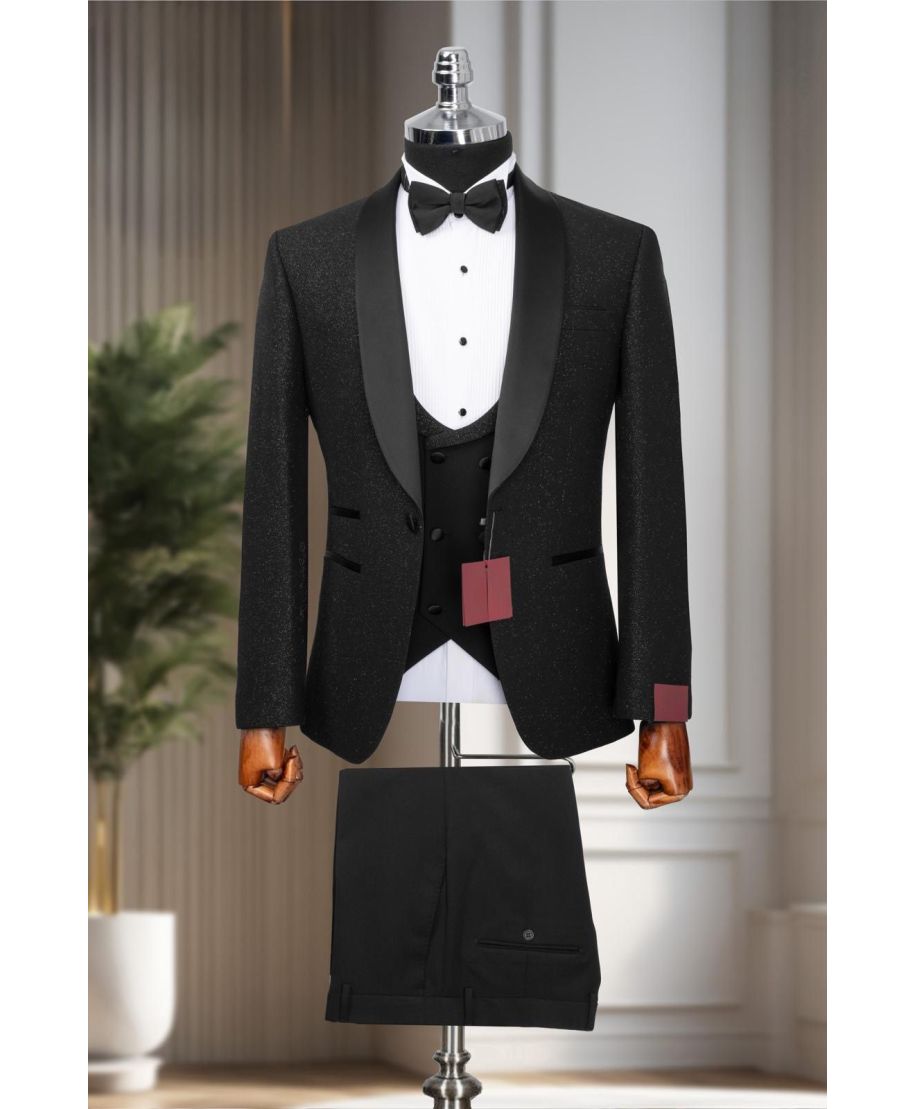 Perfetto per eventi formali come matrimoni, gala, e serate di lusso, il Smoking Uomo Tre Pezzi Shiny Deluxe - Nero ti accompagnerà con stile in ogni situazione. Grazie al suo meraviglioso design, potrai indossarlo con sicurezza sia in riunioni di lavoro importanti che in serate di classe nei migliori ristoranti della città. Questo smoking è il compagno ideale per chi desidera un look sofisticato e senza tempo.