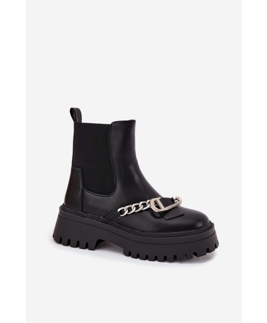 Stivaletti da donna in ecopelle nera con catena e fodera in pelliccia - Modello 216798 Step in style