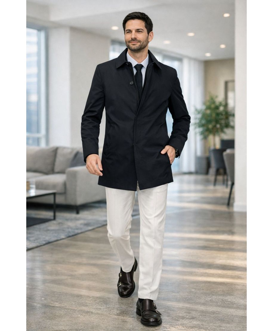 • Trench uomo nero perfetto anche per essere indossato con un abito elegante