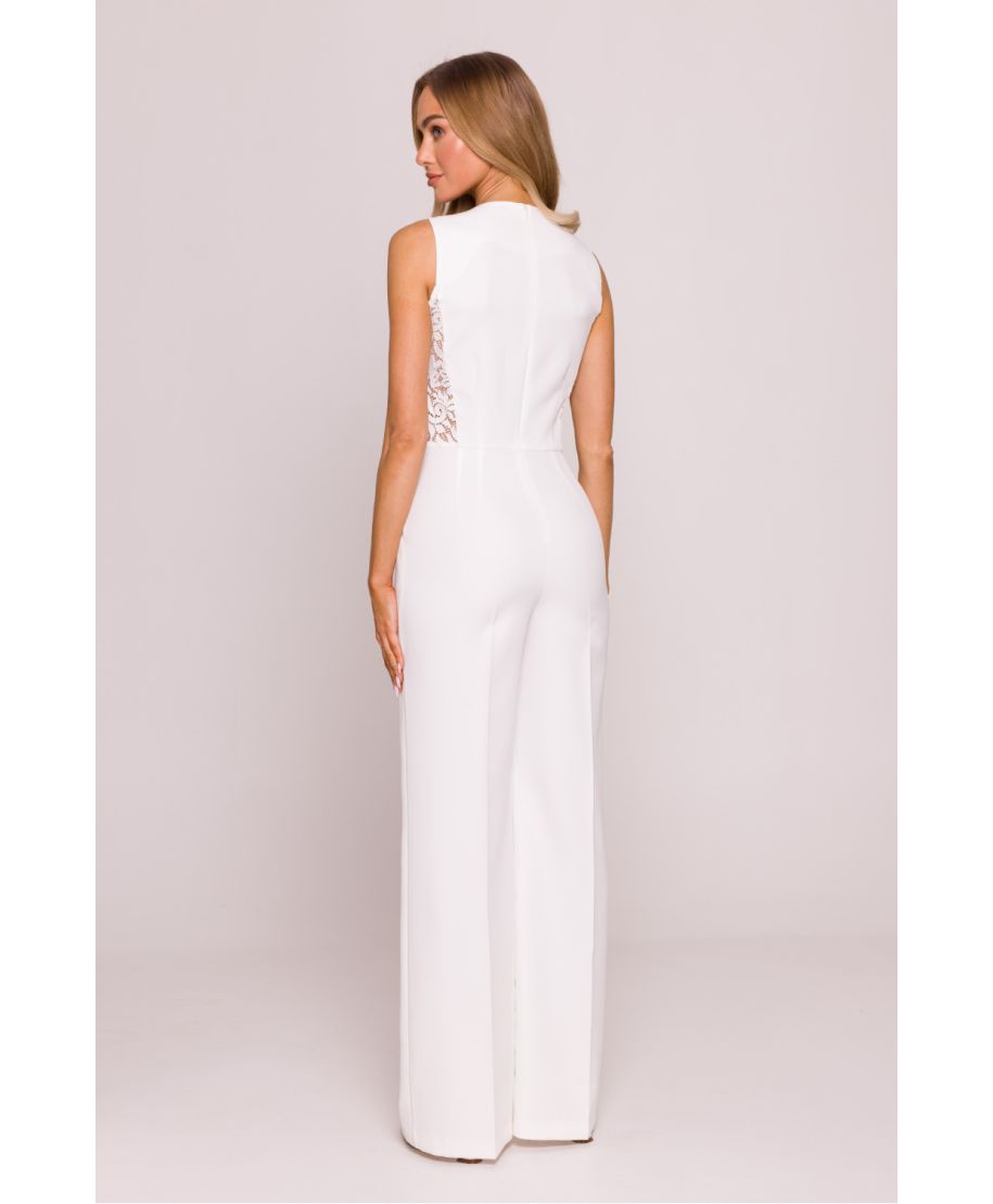 Tuta elegante donna bianca con pizzo e pantaloni a palazzo – Modello 213666 Moe