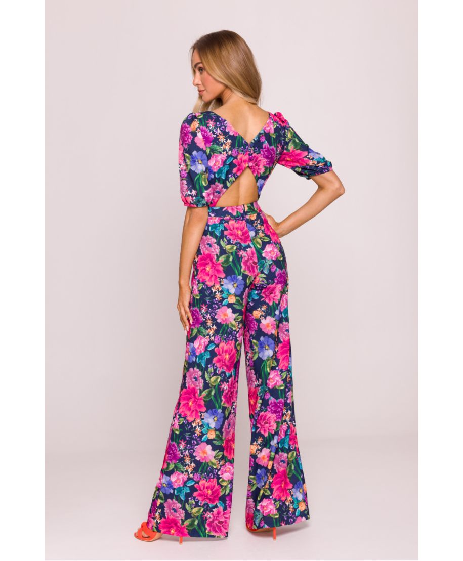 Jumpsuit donna fantasia fiori con pantaloni a gamba larga – Tuta estiva elegante - Modello 213695 Moe