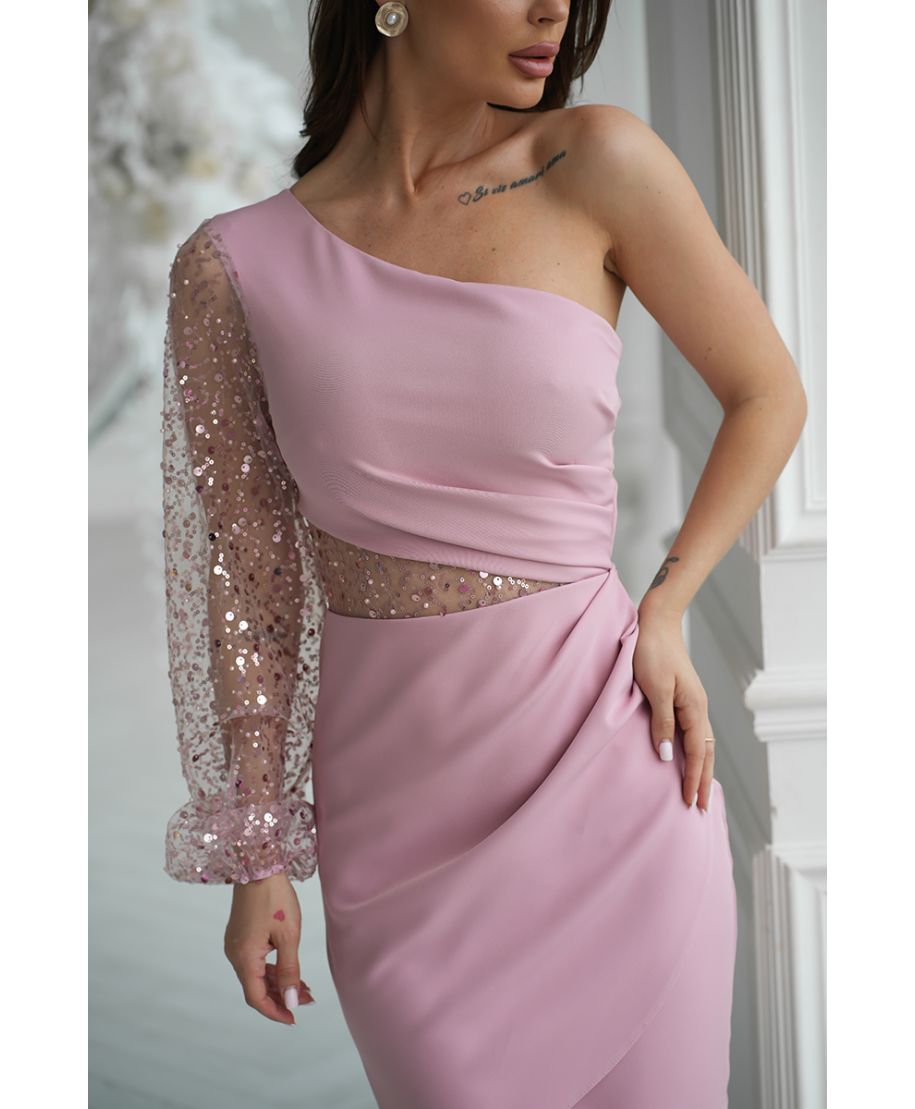 Vestito corto, tubino - colore rosa sporco - Mono spalla