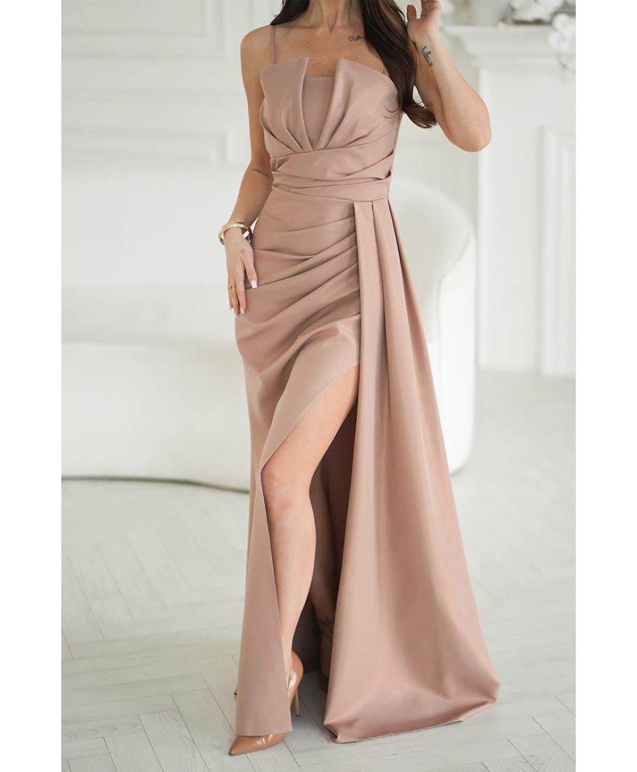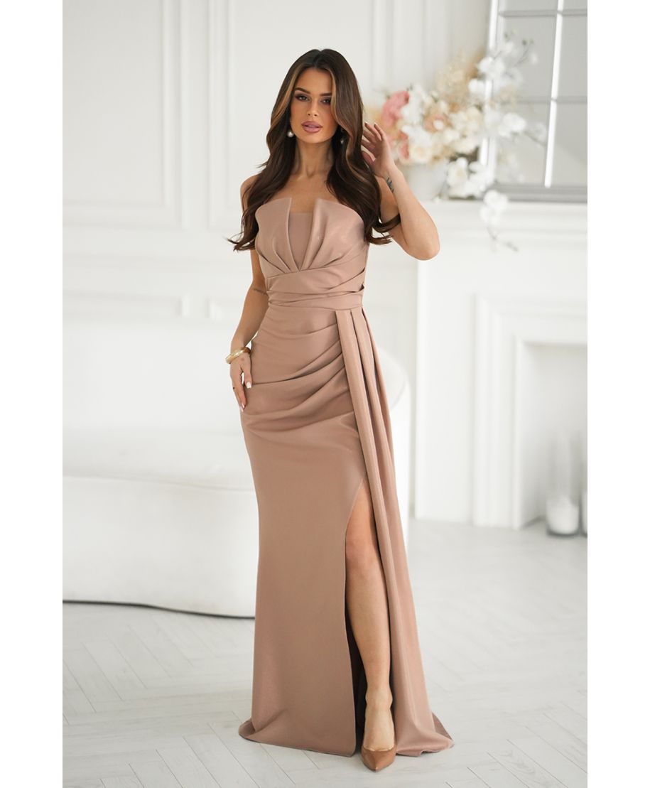 Vestito da cerimonia Camel - Scollatura Geometrica - Oriana