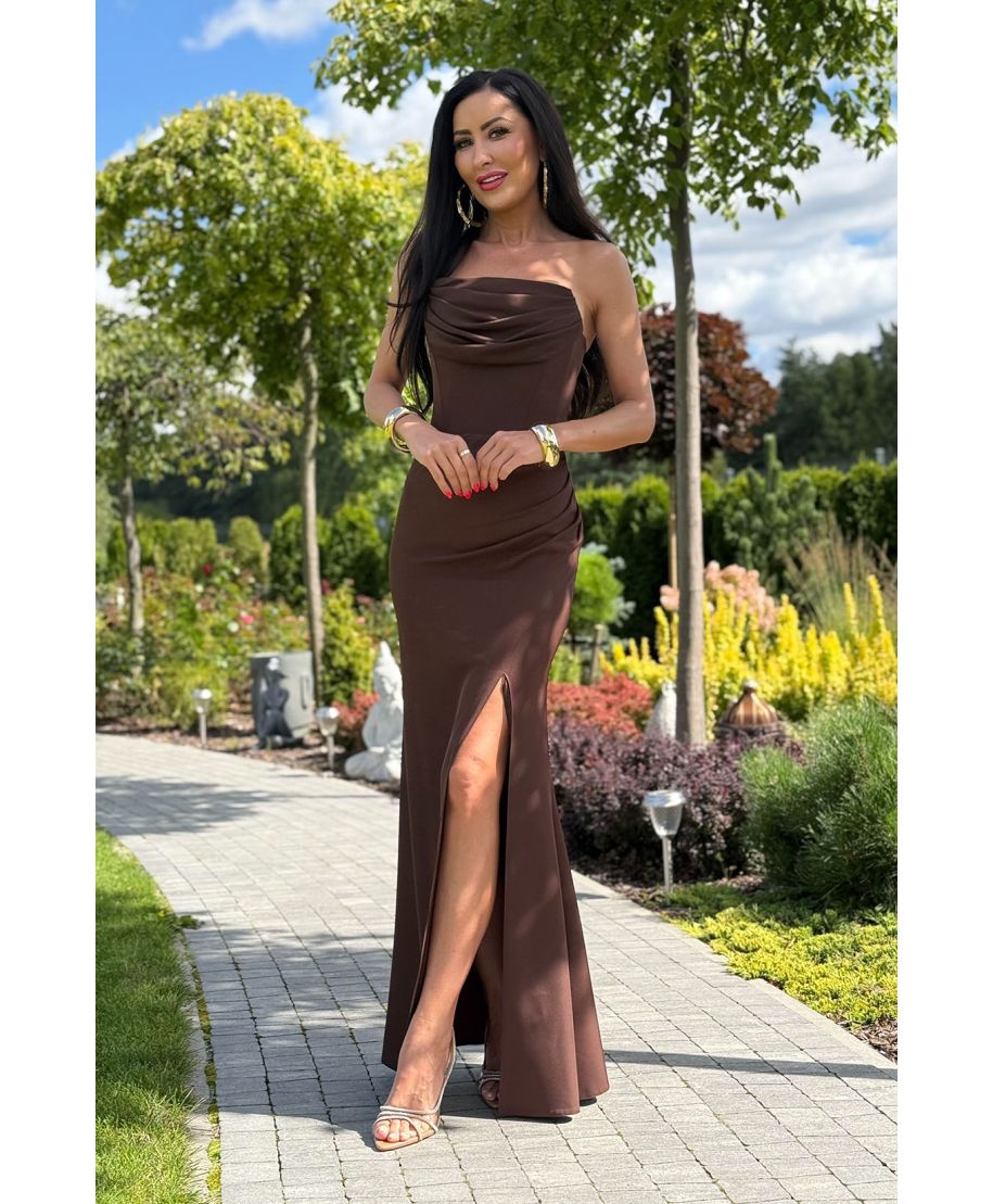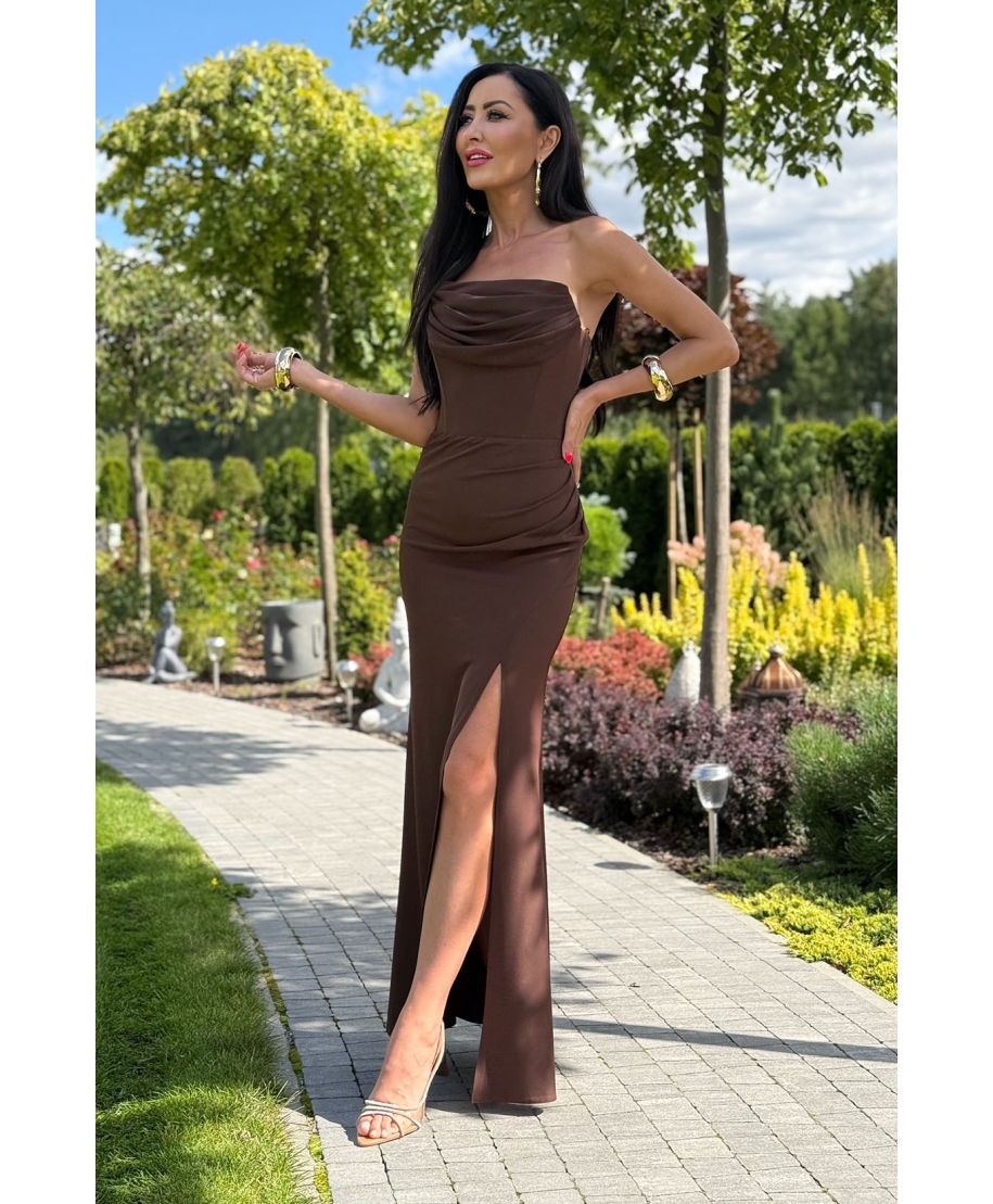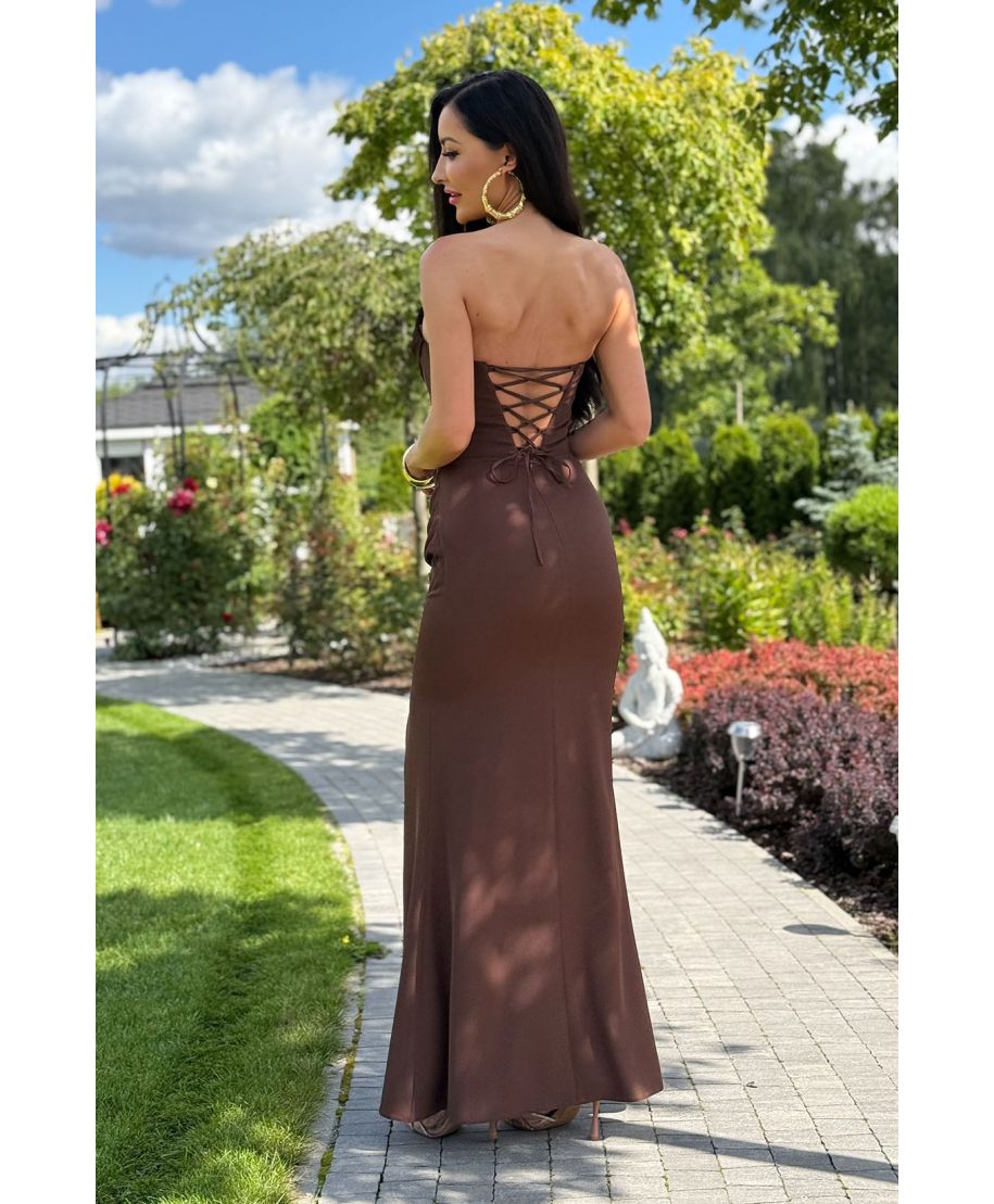 ROCHEL długa gorsetowa sukienka o kroju syrenki / Czekoladowy