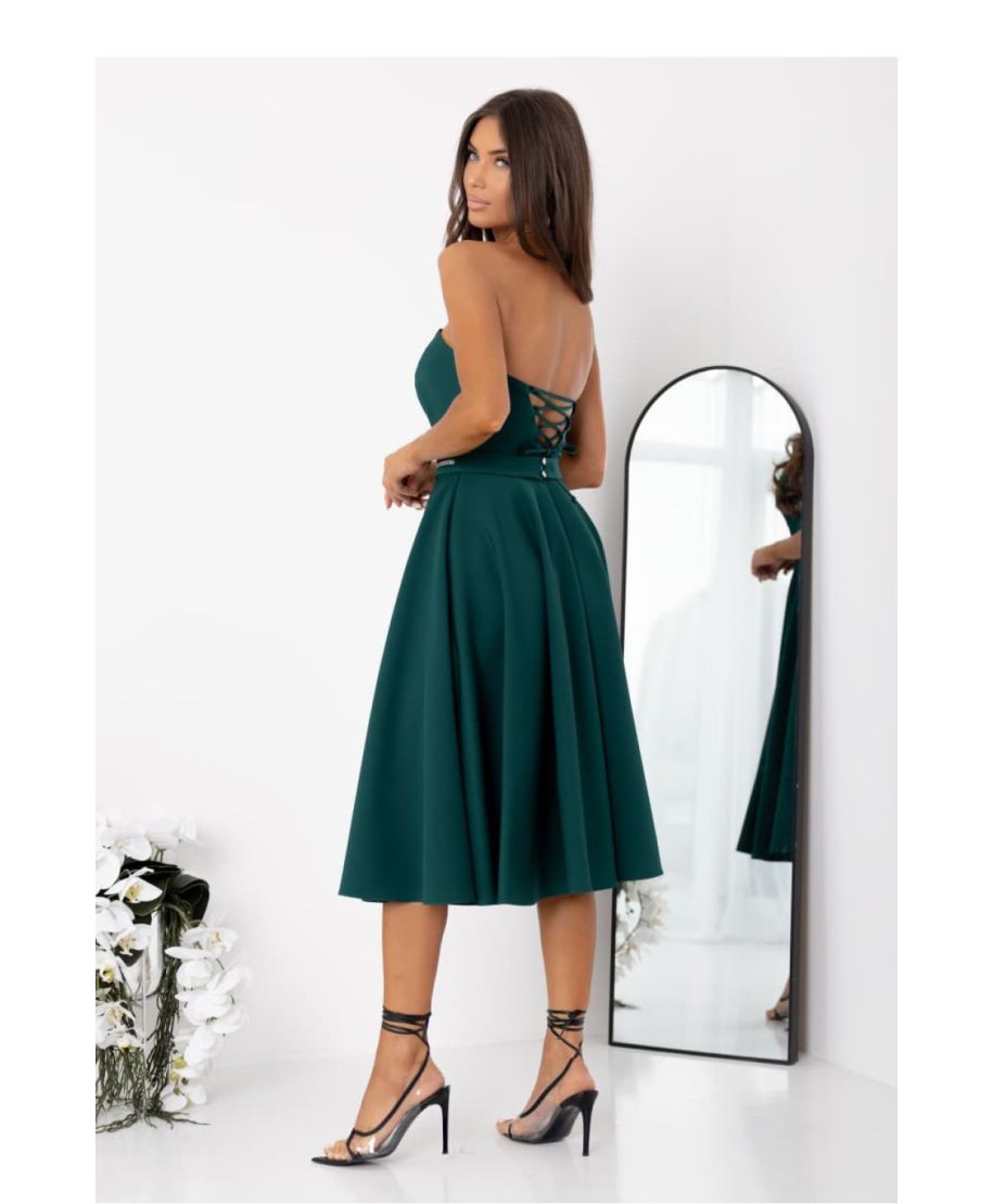 Vestito da sera senza spalline verde scuro With You 222695 con gonna svasata e cintura luminosa