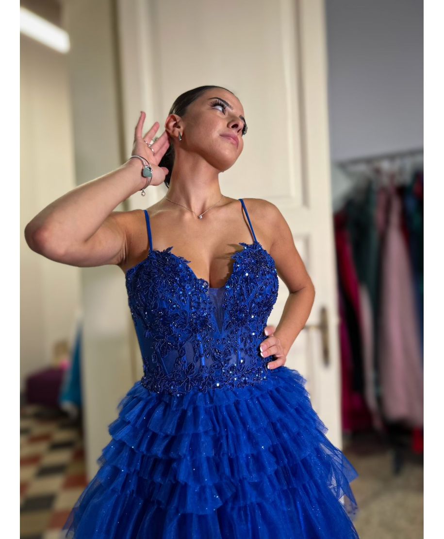 Perfetto per il diciottesimo compleanno, il "Vestito Diciottesimo Compleanno - Capricciosa" è stato creato per momenti speciali. La sua gonna ampia si presta a serate danzanti e feste, mentre la tonalità blu cobalto lo rende adatto anche per occasioni più formali, come cene di gala o eventi esclusivi. Grazie alla sua versatilità, può anche essere l'outfit ideale per cerimonie di laurea o qualsiasi altra celebrazione dove sogni di essere protagonista.