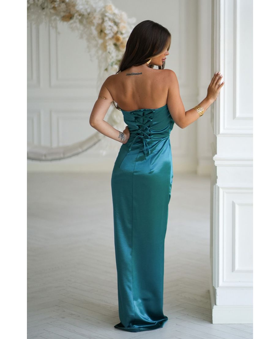 - Abito da cerimonia monospalla con cerniera e lacci dietro