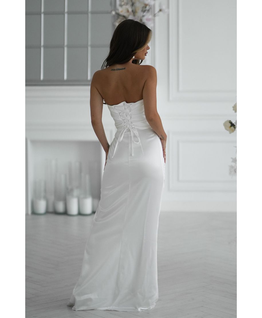 - Abito lungo in satin lucido, colore bianco luminoso e raffinato