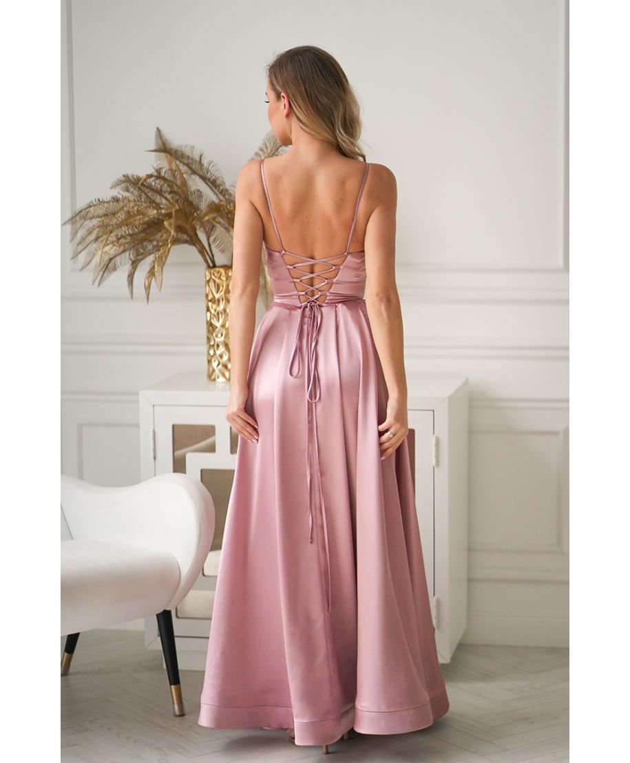 Abito satinato da cerimonia rosa con allacciatura gorset e gonna ampia