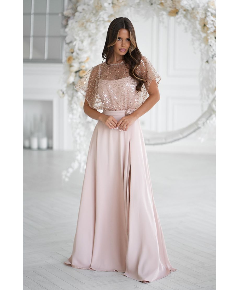 • Vestito lungo con semplice con bolerino in pailettes