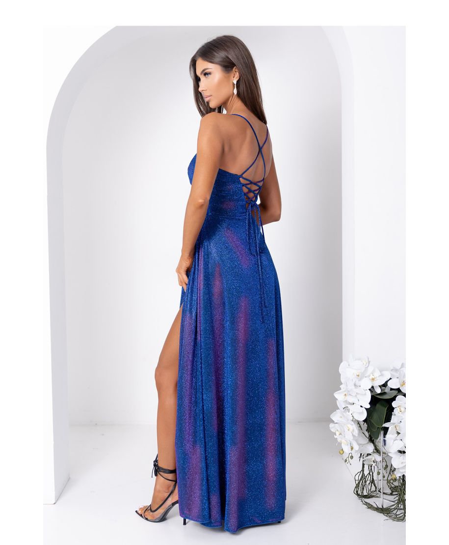L'efficace lungo abito femminile ed elegante, ideale per occasioni speciali e uscite estive. Il modello attira l'attenzione con lo spacco sul davanti, che mette in risalto delicatamente la gamba e aggiunge leggerezza e sensualità alla stilizzazione. L'abito ha spalline a nastro e il laccio sul retro non è solo un accento decorativo, ma anche una soluzione pratica che consente un perfetto adattamento alla silhouette. Un ulteriore vantaggio è la possibilità di aggiungere spalline aggiuntive (non incluse nel set), che offrono maggiore libertà nello stile e nell'indossare. Il modello offre anche regolazione in vita e nel seno, garantendo comfort e adattamento individuale. È una proposta eccellente per le donne che apprezzano l'unione di eleganza, funzionalità e design moderno. L'abito si adatta perfettamente a feste, cerimonie ed serate vacanziere.