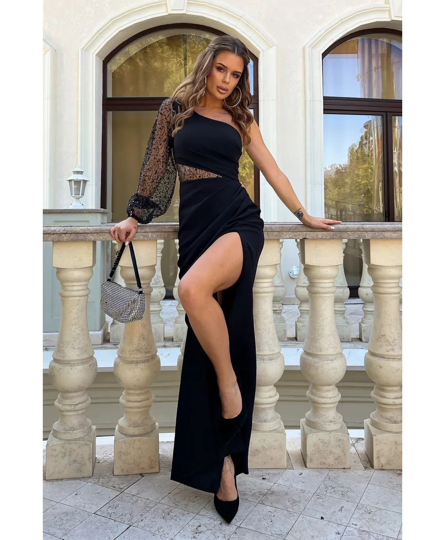 Vestito lungo monospalla, nero - Mimi - Abiti per lauree, comunioni, battesimi - Gogolfun.it