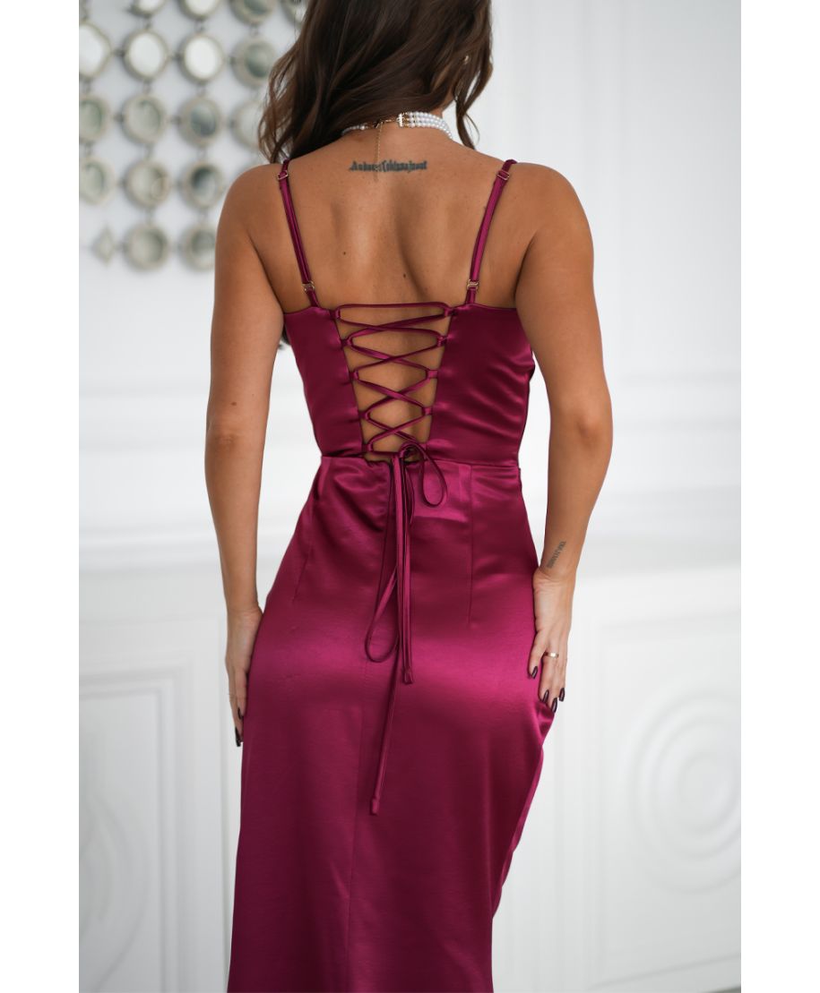 Abito satinato maxi bordeaux con Spacco e allacciatura gorset – Eleganza e Carisma
