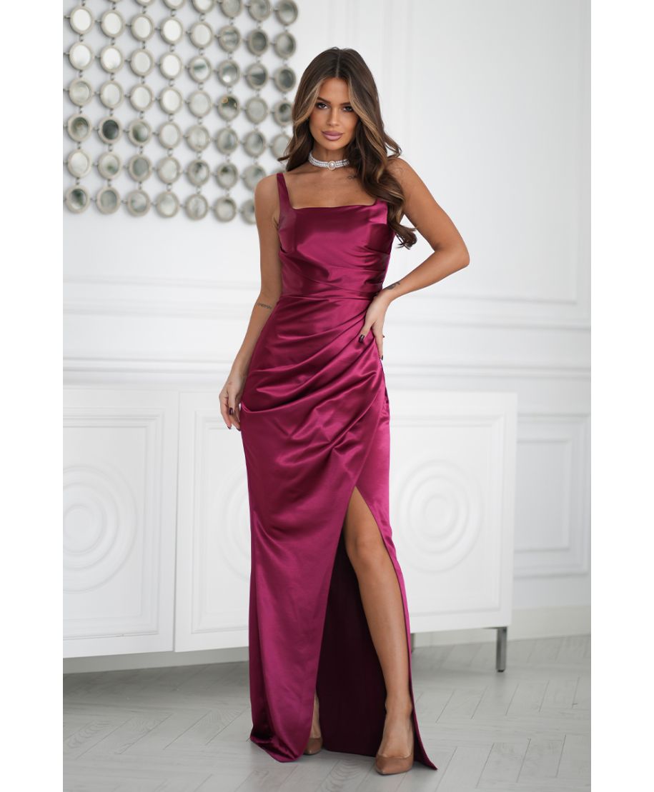 Vestito lungo satinato bordeaux con scollo quadrato – Raffinatezza e femminilità
