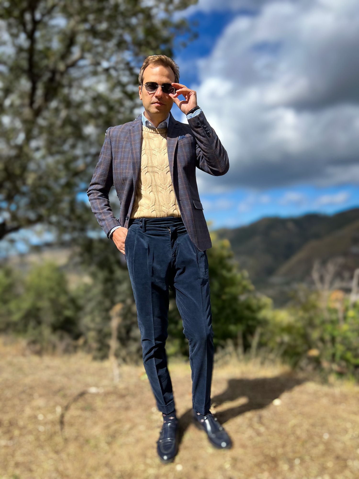 Giacca uomo sportiva con maglia treccia, mix sportivo elegante