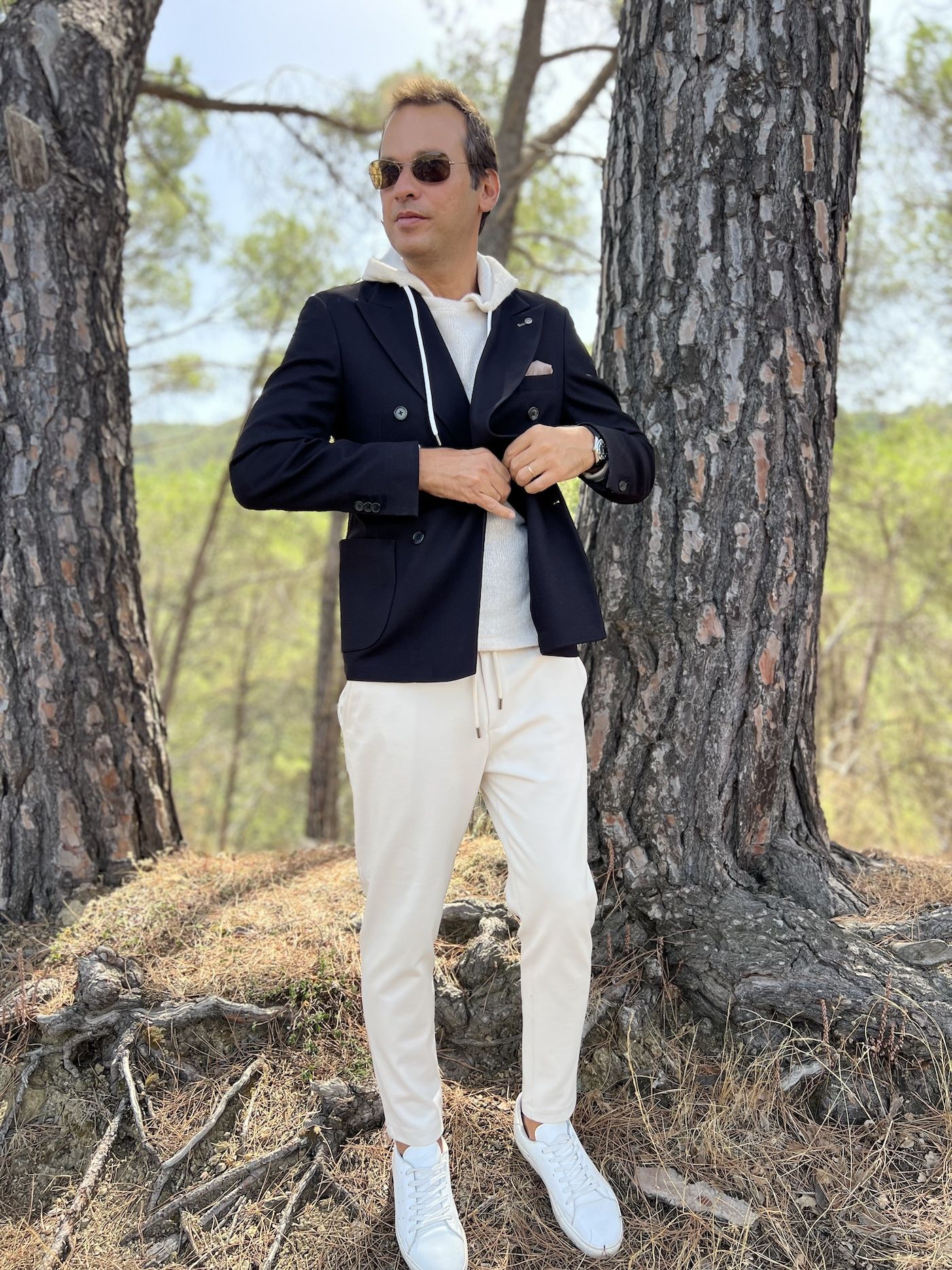 Completo con giacca uomo doppiopetto, sportivo elegante.