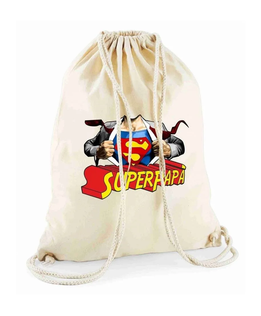 Lo zaino super Papà. Le borse con i lacci più comode sono in tela, con il logo di super papà. Lo zainetto a sacca per un idea regalo perfetta. Ideale come zainetto da spiaggia o per il tempo libero. I lacci che fungono da bretelle sono in corda, chiusura a stringere laccio in cima e stampa digitale.